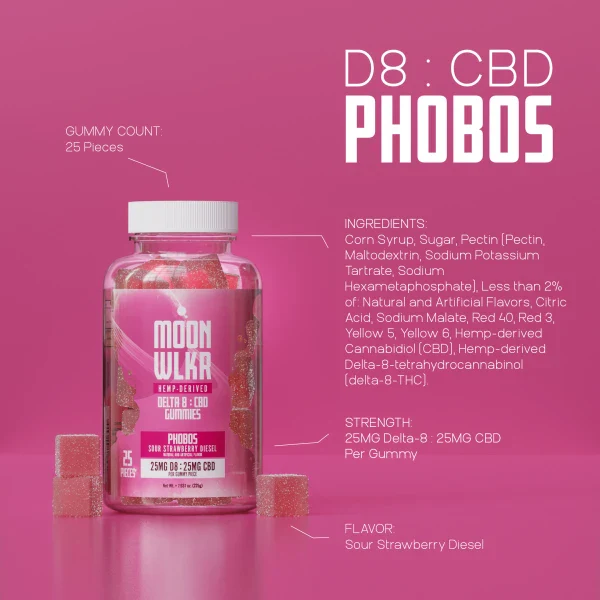 Embrace the calming power of CBD plus Delta 8. Sour Strawberry perfectly complements Sour Diesel, highlighting the terpene with sugary, sour crystals of playful deliciousness.